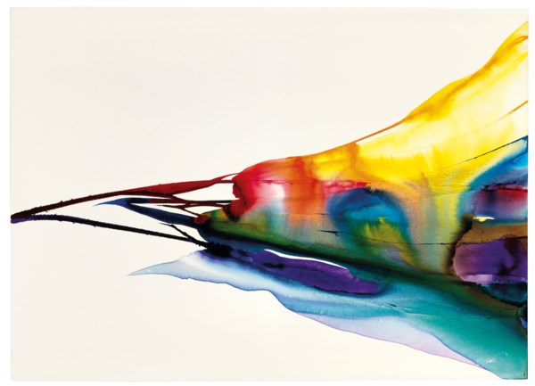 The canvas undulates very slightly at the upper left and lower left corners. Under ultraviolet light, there are very small scattered dots and dashes of inpainting visible along the upper and lower edges. There are several additional diagonal and horizontal areas of inpainting visible under ultraviolet light to the white painted passage of the lower left quadrant which are also faintly visible under regular lighting conditions.