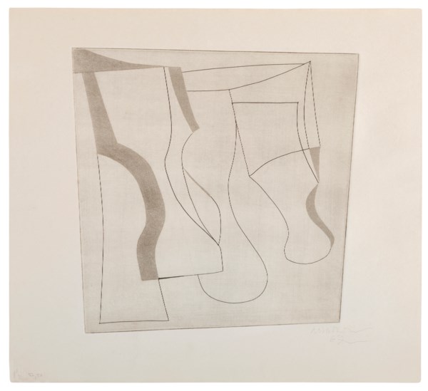 (Still Life with Grey) with margins (the edges have been slight trimmed), pale light- and time staining, pale foxing in places in the image and margins, a moisture stain at the lower left sheet edge (measuring ¼ x 2-in.)