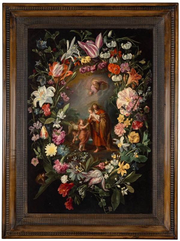 This painting is executed on a uniformly thin sheet of copper that is nearly flat. The paint layer is stable, under a clear varnish, which has been unevenly applied. There is an extremely fine craquelure across the surface. In raking light scattered repairs to losses in the darkest area of the painting are visible. These restorations are also visible under ultraviolet light. Further inspection under UV was hindered by the opaque varnish. The painting is in fine state and should be displayed as is. The work is offered in a dark wood Dutch-style frame.