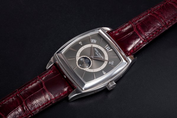 BUCKLE: The platinum Patek Philippe folding buckle shows light scratches.